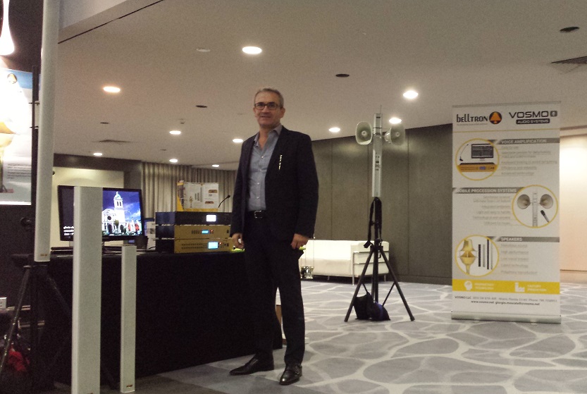 Dal 29 settembre al 1 ottobre 2015 l’Arcidiocesi di Miami ha convocato il clero per una riunione e la Belltron si è presentata ufficialmente al mercato americano. VOSMO LLC è la ditta con la quale i prodotti audio Belltron sono distribuiti negli Stati Uniti. Giorgio Moscatelli e Alessandro Libetti hanno presenziato per la Belltron alla riunione del clero, presentando un nuovo amplificatore digitale, con LCD a colori, la tecnologia sempre più raffinata e moderna che permette di ottenere il massimo dell’intelligibilità da qualsiasi ambiente.