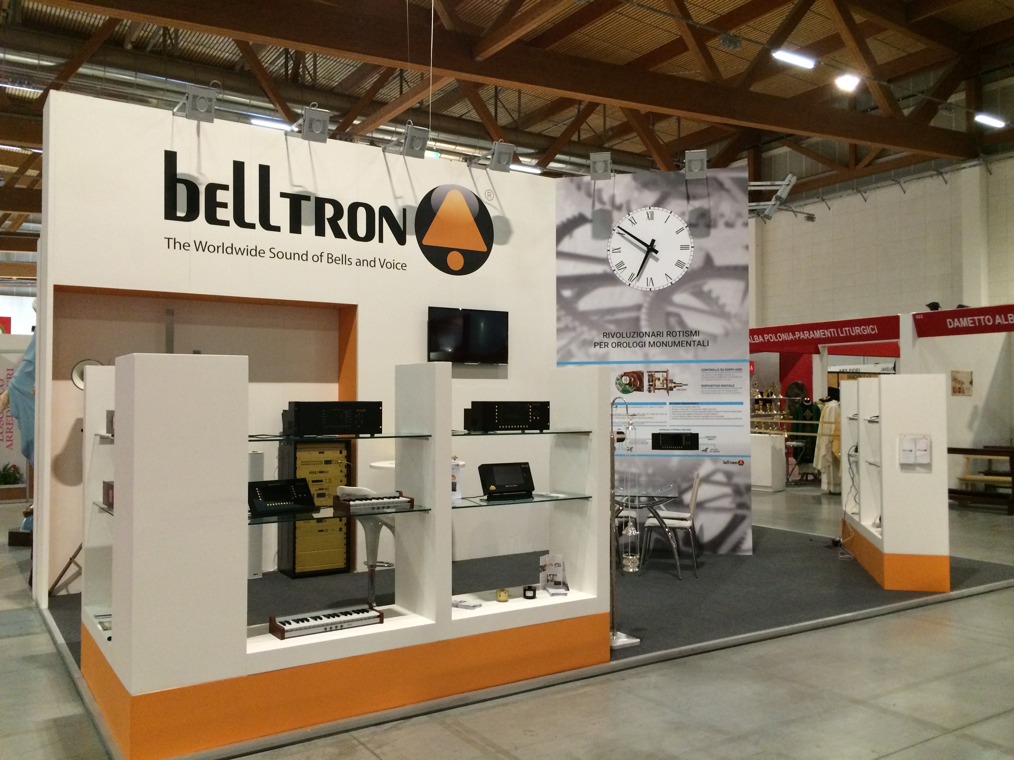 The new clock gear system is made up of innovative digital devices which synchronize to a tenth of a second the position of the clock hands to the atomic time.The Koine’ fair is a true motivation for us manufacturers as well as being an opportunity for constructive dialogue with installers and dealers. Customers and experts had the pleasure to test the Belltron clock gear system and ask questions concerning its functioning. The final result was: a pleasant surprise for everyone.